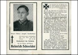Eltern: Ferdinand Schneider und Gertrud Kalscheuer; Gefallener 2. Weltkrieg |