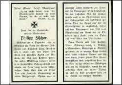 Heizer Vereinigte Ville; Eltern Johannes Fischer und Elisabeth Zepp; ∞ 5.7.1927 Christine Kirsch, 1 K. Gefallener 2. Weltkrieg |