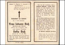 Eltern: Johann Schmitz und Sofia Bell; ∞ Johann Buß; 2 K. ; Opfer 2. Weltkrieg |