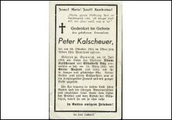 Eltern: Adam Kalscheuer und Elisabeth Dürr; ∞ 24.3.1944 Grete Wasem; Gefallener 2. Weltkrieg |