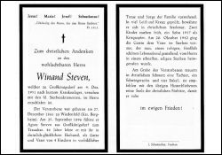 ∞ 25.9.1896 Agnes Steven aus Großkönigsdorf, † 20.10.1942; 46 J. Ehe; 4 K., davon 2 früh †; 1 Sohn 1917 im 1. Weltkrieg gefallen |