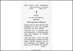 Eltern: Josef Peck u. Anna geb. Wallraf |