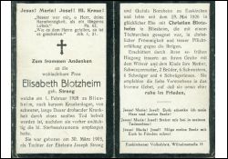Eltern: Joseph Strang und Gudula Bornheim; ∞ 29.5.1926 Christian Blotzheim; 1 K. |