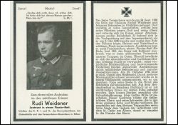 Ingenieurstudent, Pionier, Leutnant; Eltern: Rudolf Weidener und Johanna Schmelzer; Gefallener 2. Weltkrieg |
