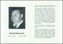 Buchdrucker; Eltern: Heinrich Bürvenich und Katharina Sattler; ∞ 1935 Gertrud Klein; 5 K.; Mitgl.: Kirchenchor, freiw. Feuerwehr, Schützenbruderschaft, Männergesangverein |