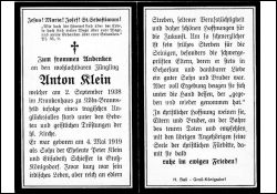 Eltern: Peter Klein u. Elisabeth geb. Schieffer in Großkönigsdorf; |
