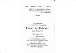 Krücken, geb. Hamacher | Vorname: |