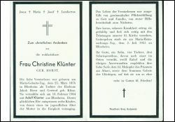 Eltern: Jakob Horst und Gertrud Klinz; ∞ 10.2.1904 Adolf Klünter; 6 K. davon 1 † |