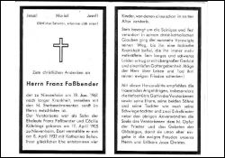 Eltern: Franz Faßbender u. Cäcilie geb. Kührlings; ∞ 8.4.1932 in Nievenheim Katharina Bellen; 4 K., davon 1 früh †; langes, schweres Leiden |