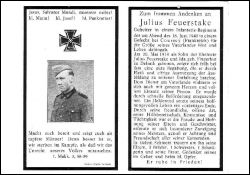 Gefallener 2. Weltkrieg; Eltern: Julius Feuerstake u. Ida geb. Fingerhut; Druck in Dormagen |