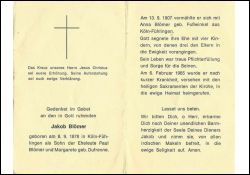 Eltern: Paul Blömer u. Margarete geb. Dufrenne; ∞ 13.9.1907 Anna Fußwinkel aus Köln-Fühlingen; 4 K., davon 3 † |