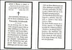 ∞ 5.6.1909 Peter Weihrauch aus Köln-Fühlingen, † ; 6 K., davon 2 †; 1 Sohn im 2. Weltkrieg in Russland vermisst |