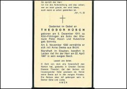 Eltern: Peter Hüsch u. Hubertine geb. Schmitz; ∞ 5.11.1938 Anna deska aus Brühl/Rhld. |