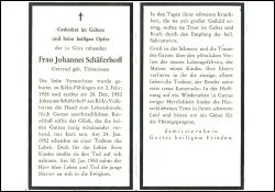 ∞ 28.12.1950 Johannes Schäferhoff aus Köln-Volkhoven; 1 Tochter, geb. am 24.1.1952; 6 Tage nach der geburt starb die Mutter |