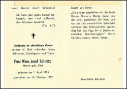 ∞ Josef Schmitz, †; Druck in Köln-Niehl |
