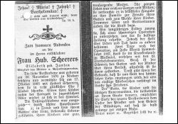 ∞ 17.10.1903 Hubert Scheerers; 7 K., davon 1 jugendlich †; langjähriges Leiden; gest. 2 Tage nach schwieriger Operation; Mitgl. Mütter- u. Rosenkranzverein |