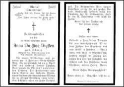 Mitgl. Mütterverein u. Immerwährender Kreuzweg; ∞ 4.4.1907 Heinrich Hubert Thyßen (Thyssen); 5 K.; lange Krankheit |
