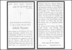 Eltern: Heinrich Thyssen u. Anna Sofis geb. Ramakers; ∞ 16.7.1919 Elisabeth Heynckes; 3 Töchter |
