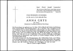 Mitgl. Frauengemeinschaft der Pfarre Elmpt; Eltern: Peter Joseph Theloy u. Jakobine geb. Wekx; ∞ 3.10.1931 Gerhard Grys; 2 Söhne; |