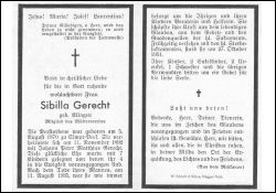 Mitgl. Mütterverein; ∞ 11.11.1892 Johann Peter Matthias Gerecht, † 11.8.1935; 7 K., davon 4 †; Druck in Brüggen, Ndrh. |