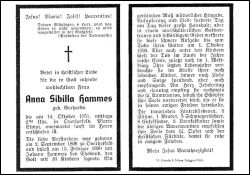 ∞ 15.2.1890 Johann Hammes, † 1.10.1938; 16 K.; mehrere Kinder †, zuletzt gefallen im 1. Weltkrieg; 5 überlebende Söhne |
