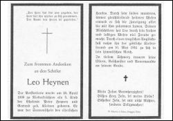 Tod durch Unglücksfall; Schüler; Eltern: Peter Heynen u. Gertrud geb. Kleinen |