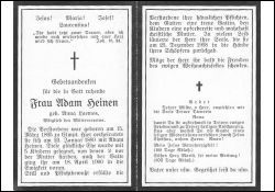 ∞ 23.1.1889 Adam Heinen, † 18.4.1900; 5 K., davon 2 †; |