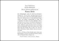 Eltern: Oberstudiendirektor Dr. Arnold Behr u. Berta geb. Heinen; 6 J. Kriegsdienst u. russ. Kriegsgefangenschaft; ∞ 4.9.1950 Hermine Smets; 2 Söhne: Hans-Jürgen u. Wolfgang; Obervermessungsrat; Leiter des Katasteramtes Wesel, Landkreis Rees |