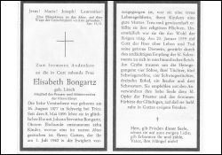 Mitgl. Frauen- u. Mütterverein der Pfarre Elmpt; ∞ 8.5.1896 Johann Servatius Bongartz, † 1.7.1942; 10 K., davon 1 früh †; |