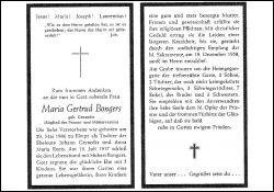 Mitgl. Frauen- u. Müttervderein Elmpt; Eltern: Johann Geraedts u. Anna Maria geb. Reefs; ∞ 13.7.1917 Hubert Bongers; 5 K.; längere Krankheit |