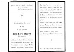 Längere Krankheit; ∞ 24.5.1924 Jakob Jacobs; 3 K., davon 2 †; Druck in Düren |