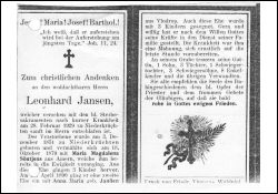 ∞ 18.10.1879 Maria Magdalena Söntjens aus Amern, †; 3 K.; ∞ April 1890 Anna Maria geb. Janßen aus Vlodrop; 3 K.; Druck in Waldniel |