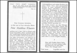 Eltern: Johannes Josef Kleuvers u. Sibilla Gertrud geb. Göbels; ∞ 20.1.1920 Josefine Elisabeth Houx; 3 K.; Mitgl. Kirchenvorstand; aktiv in der Bruderschaft; |