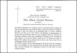 Eltern: Peter Heinrich Erkens u. Anna Katharina geb. Geerkens; Mitgl. Frauengemeinschaft der Pfarre St. Laurentius; ∞ 3.5.1919 Martin Wilhelm Mevissen, † 15.3.1960; |