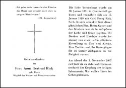 ∞ 15.1.1919 Carl Georg Rick, † ; 6 K., davon 1 Tochter † |