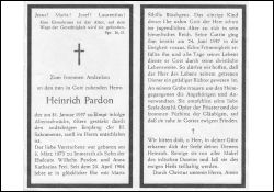 Eltern: Wilhelm Pardon u. Anna Katharina geb. Frei; ∞ 23.4.1904 Maria Sibilla Büschgens, † 24.6.1937; 1 K., jugendl. †; |