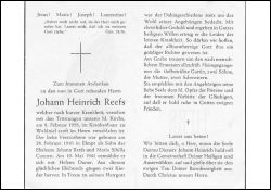 Eltern: Johann Reefs u. Maria Sibilla geb. Coenen; ∞ 10.5.1941 Helene Duner; 2 K. |