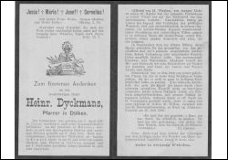 Priesterweihe Münster 2.6.1855; 3 J. Kaplan in Kempen; seit 30.7.1868 Pfarrer in Dülken; Neubau und Ausstattung einer neuen Pfarrkirche; Kranken- u. Waisenhaus; schwere Krankheit und Operation; mehrwöchiges Leiden |