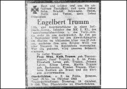 Gefallener 2. Weltkrieg; 27 J.; Mutter: Wwe. Katharina Trumm geb. Timmermanns; Wohnort: Oberkrüchten |