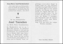 Gefallener 2. Weltkrieg; Todesnachricht erreichte die Familie erst im April 1946; arbeitete auf elterl. Hof; Herbst 1938 Einberufung; Druck in Waldniel |
