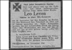 Gefallener 2. Weltkrieg; Eltern: Anton Leven u. Christine geb. Wilms; Wohnort Oberkrüchten |