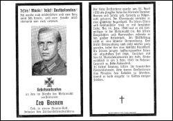 Gefallener 2. Weltkrieg; Eltern: Theodor Beenen u. Josefa geb. Lamertz; am 14.2.1940 als Freiwilliger zur Wehrmacht; im Westfeldzug schwer verwundet, davon nie wieder genesen; tückische Krankheit; Druck in Waldniel |