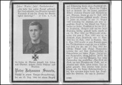 Gefallener 2. Weltkrieg; Eltern: Heinrich Smeets u. Wilhelmine geb. Stevens; kaum 17 J., stellte er am 21.8.1940 seine jugendl. Kraft in den Dienst des Vaterlandes; zunächst bei der Ornaisation Todt in Frankreich, Belgien und Insel Guernsey; am 18.5.1942 zur Wehrmacht; ab 6.12.1942 im Osten; Heldenfriedhof Schamilowo |