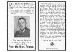 Gefallener 2. Weltkrieg; Eltern: Wilhelm Kohnen u. Maria geb. Berten; ∞ 5.8.1941 Kordula Moll aus Tetelrath; 20.5.1942 Einberufung, nach er vorher bei der Organisation Todt eingesetzt war; am 8.9.1942 nach Russland; Druck in Waldniel |