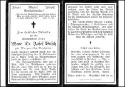 ∞ 20.6.1885 Dr. med. Josef Busch, † 10.4.1888; 1 überlebender Sohn |