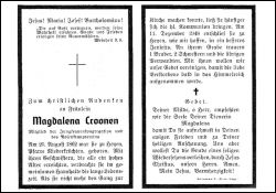 Fräulein; Mitgl. Jungfrauenkongregation u. Rosenkranzverein; lebte bei ihren Geschwistern |