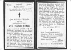 ∞ 23.11.1900 Christine Küppers; 9 K., davon 2 †; viele Jahre Mitgl. des Kirchenchores; seit 1925 Mitgl. Kirchenvorstand; im letzten Jahr schwere Operation, die nur zu vorübergehender Besserung, aber nicht zur dauernden Heilung führte |