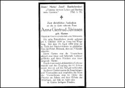 ∞ 14.4.1890 peter Jörissen, Wohnort Ryth b. Niederkrüchten; 3 K. |