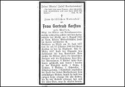Mitgl. Mütter- u. Rosenkranzverein; ∞ 13.10.1906 Peter Kersten, † 31.3.1917 im 1. Weltkrieg gefallen; 6 K., davon 1 † |