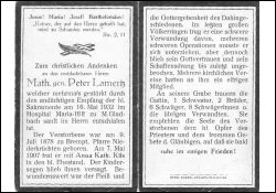 ∞ 7.5.1907 Anna Katharina Kils; kinderlos; im 1. Weltkrieg war er schwer verwundet worden, deshalb mehrere schwere Operationen; Mitgl. in kirchlichen Vereinen; Druck in Waldniel |